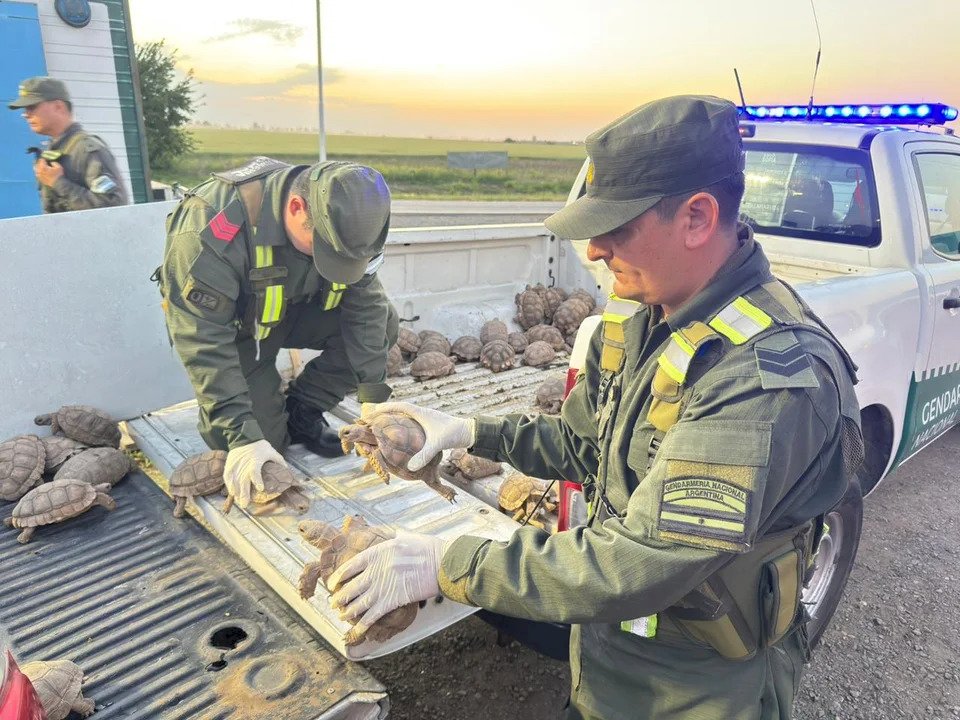 Al momento de la inspección, los funcionarios detectaron la presencia de animales dentro de bolsas tipo arpillera. Pudieron constatar que se trataba de 166 tortugas terrestres y 10 aves (nueve “cabecita negra” y un “picotero de collar”).